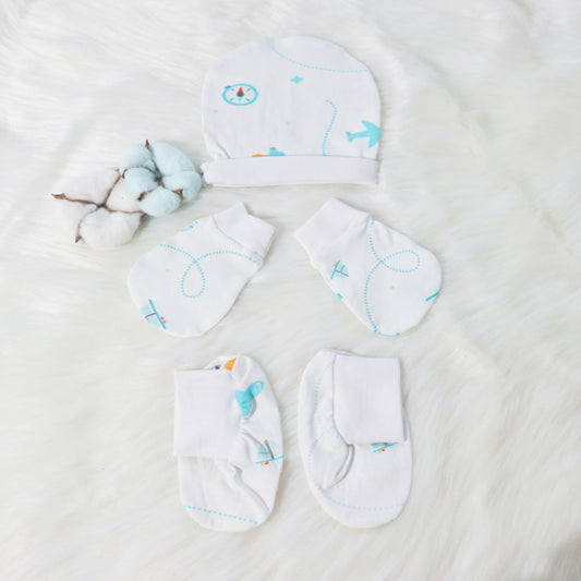 Lil Travellers - Cotton Cap, Mittens & Booties Set