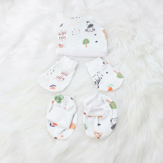 Baby Animals - Cotton Cap, Mittens & Booties Set